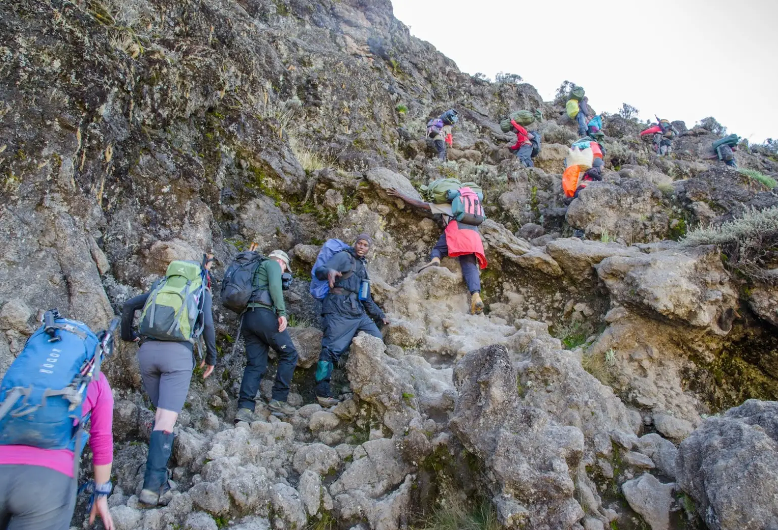 Start hiking from the Barranco camp at 8:00am and hike approximately 10km to Barafu camp stopping