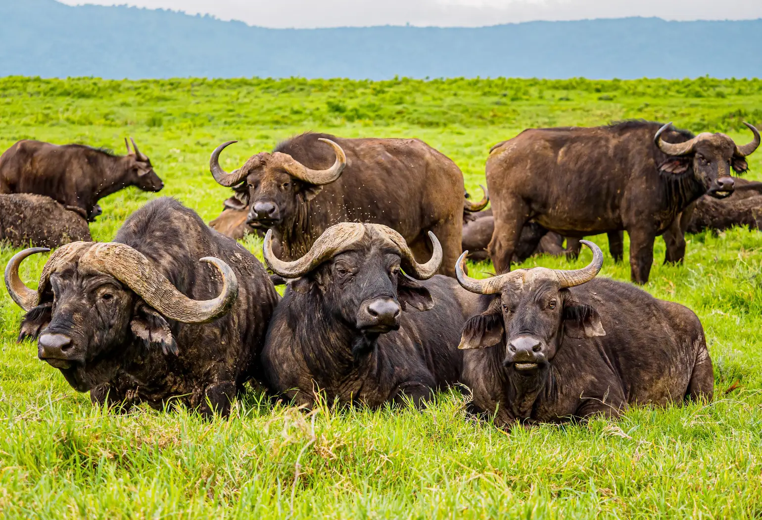 of the highest concentrations of wildlife in Africa. You may see large herds of wildebeest, zebras, giraffes, and buffalo.