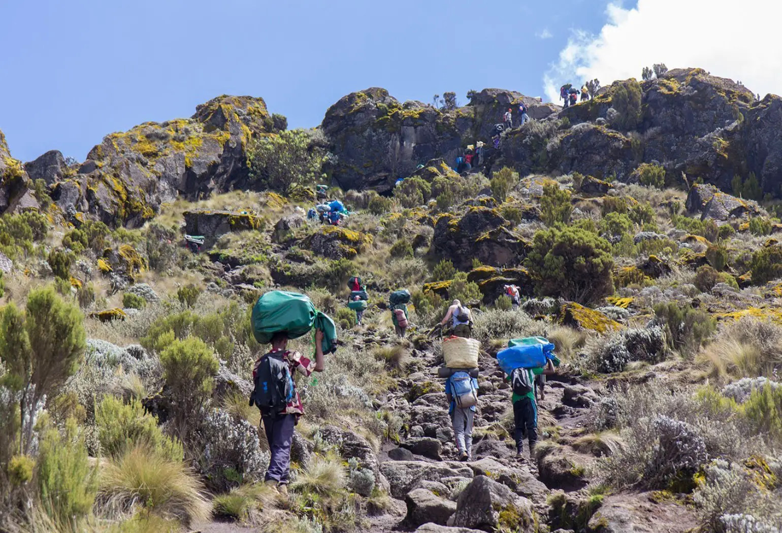 After breakfast you now continue your ascent into the Alpine desert habitat. From Horombo there are two trails to the “Saddle” (which refers to the area located between the peaks of Mawenzi and Kibo). There is an upper route (right hand fork) and lower route (left hand fork) to choose from. The upper route (right hand fork) should be very familiar, as you will have climbed most of it the previous day (on your acclimatisation hike) towards Mawenzi hut. This section is very stony and eroded.